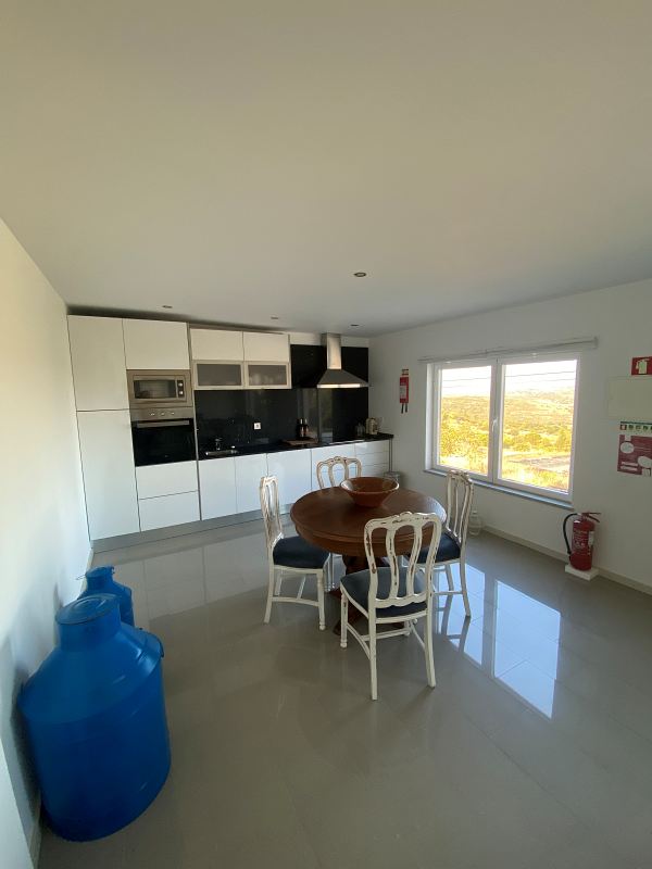 Open Space com cozinha (equipada com frigorífico, forno, placa, micro-ondas e máquina de café Nespresso), sala de estar com lareira e zona de refeições